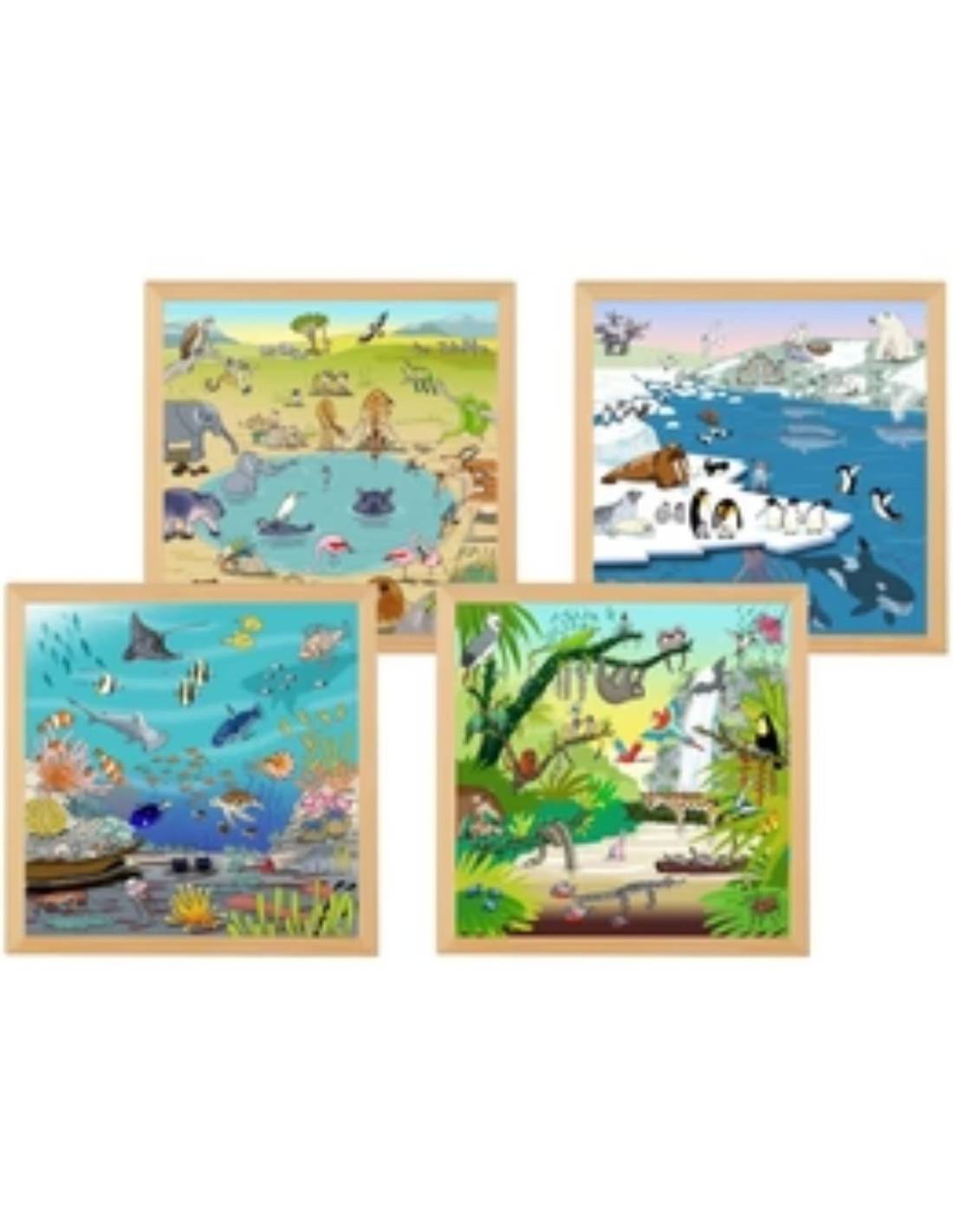 - 4 scènes d’habitats variés : savane, forêt, mer, banquise