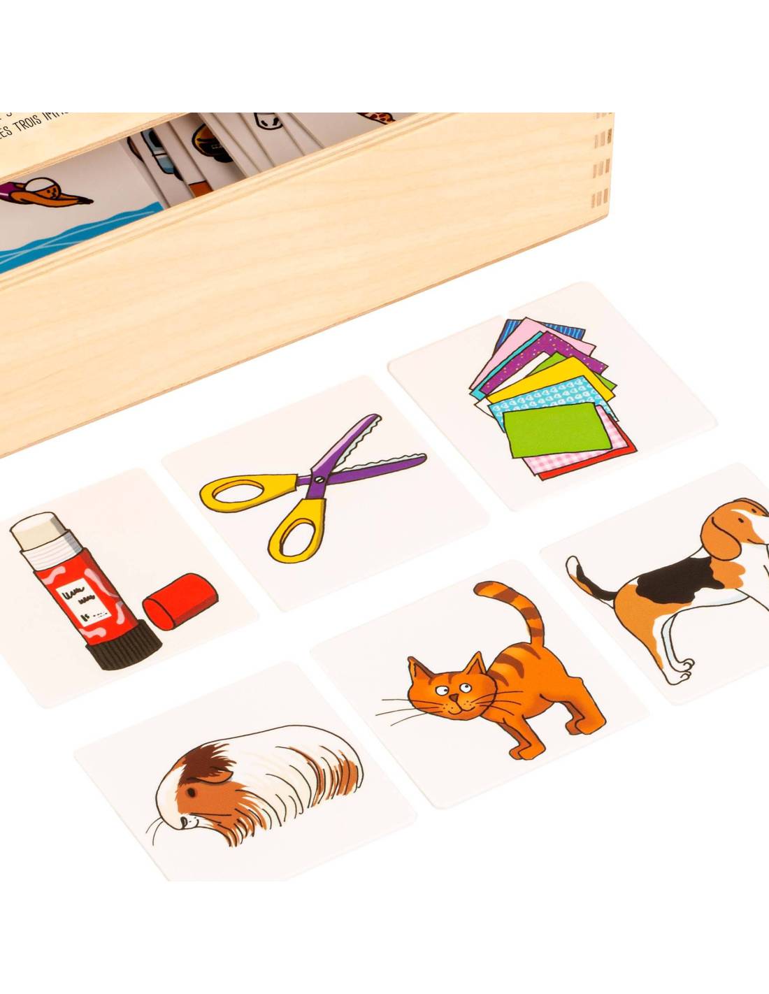 Le jeu Combinez les trois images – Toys for Life permet aux enfants de reconstituer des séquences en associant trois cartes qui se suivent logiquement. Un support idéal pour travailler le langage, la logique et la compréhension du temps.