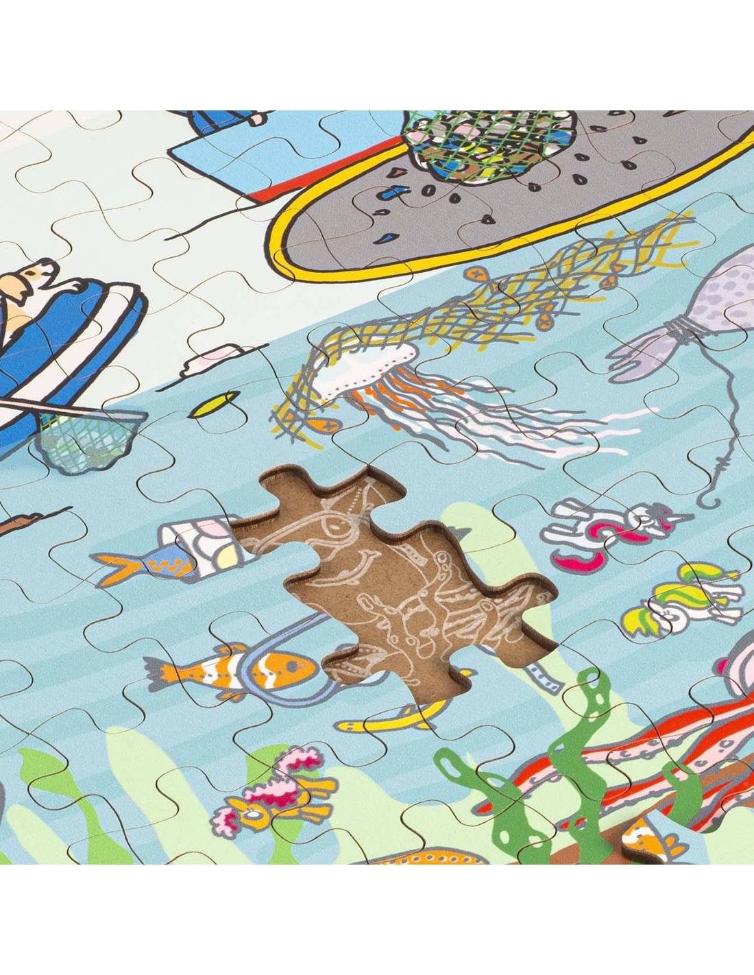 Le puzzle nature et climat – Mer de plastique (100 pièces) aide les enfants à comprendre l’impact des déchets plastiques sur les océans et la biodiversité marine. Une activité qui allie apprentissage, motricité fine et conscience écologique.