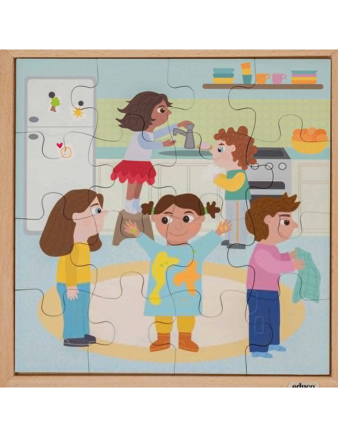 Puzzle routine quotidienne – Se laver les mains | Activité éducative en bois pour l'autonomie