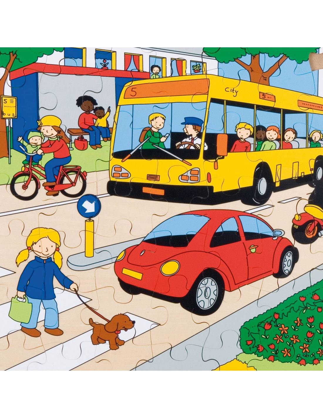 Ce puzzle Les transports urbains (49 pièces) en bois illustre une scène de circulation animée. Il aide les enfants à comprendre la vie en ville, tout en stimulant leur vocabulaire, leur observation et leur logique.