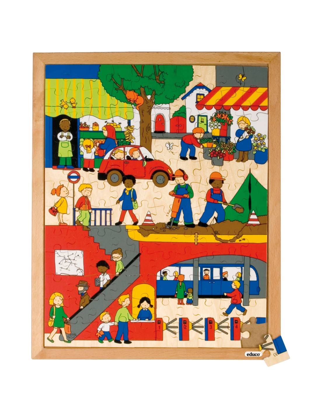 Le puzzle La ville (120 pièces) – Dessus et dessous invite les enfants à découvrir la vie urbaine sous toutes ses dimensions : ce qui se passe à la surface et ce qui se cache sous terre. Un support riche qui stimule la curiosité et l’observation.