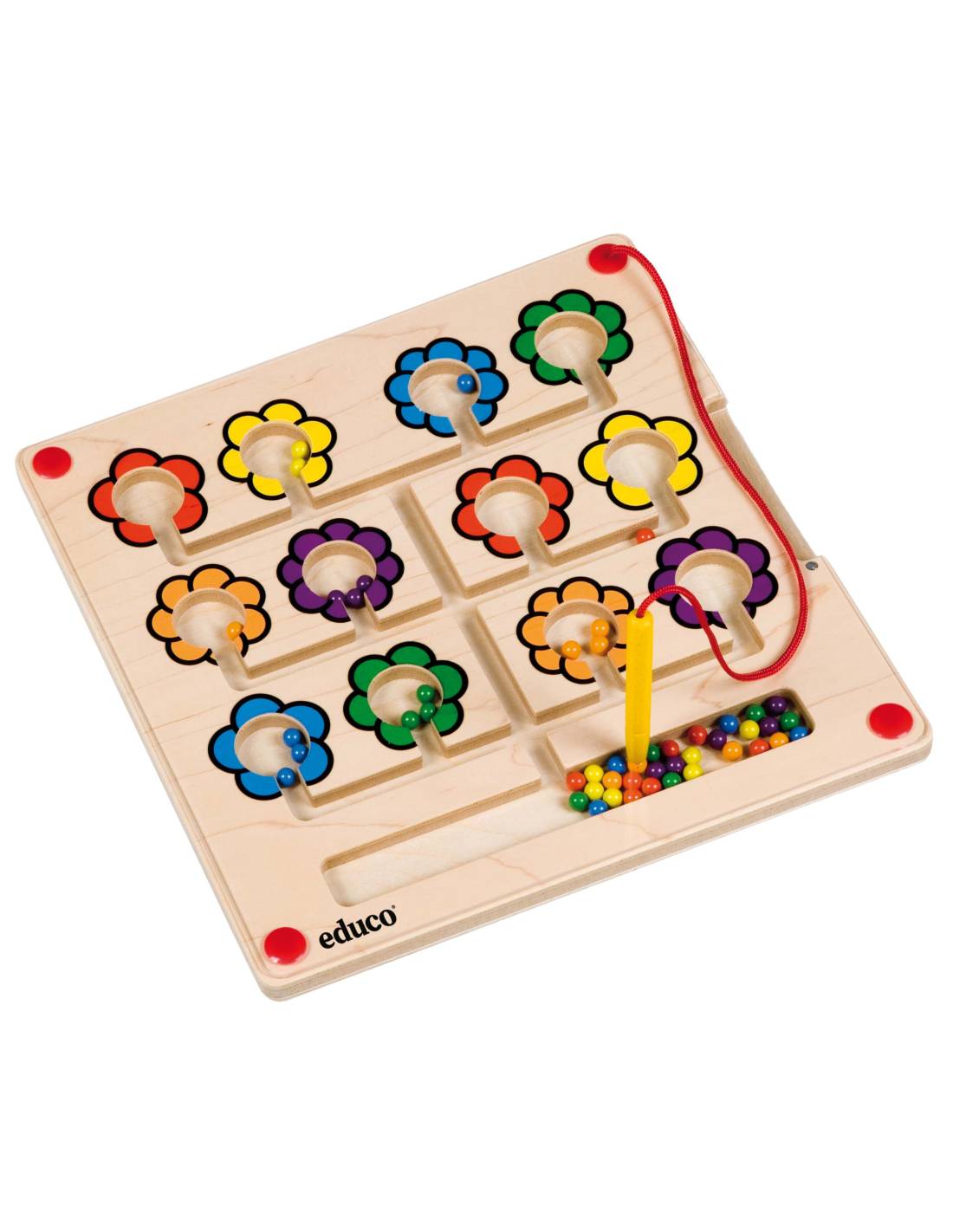 Ce tableau en bois intègre des billes métalliques sécurisées et un stylet magnétique parfaitement adapté aux petites mains. Le thème des fleurs permet de représenter des motifs variés et d’associer couleurs et formes. La conception robuste garantit une longue durée de vie, même en usage intensif en classe.