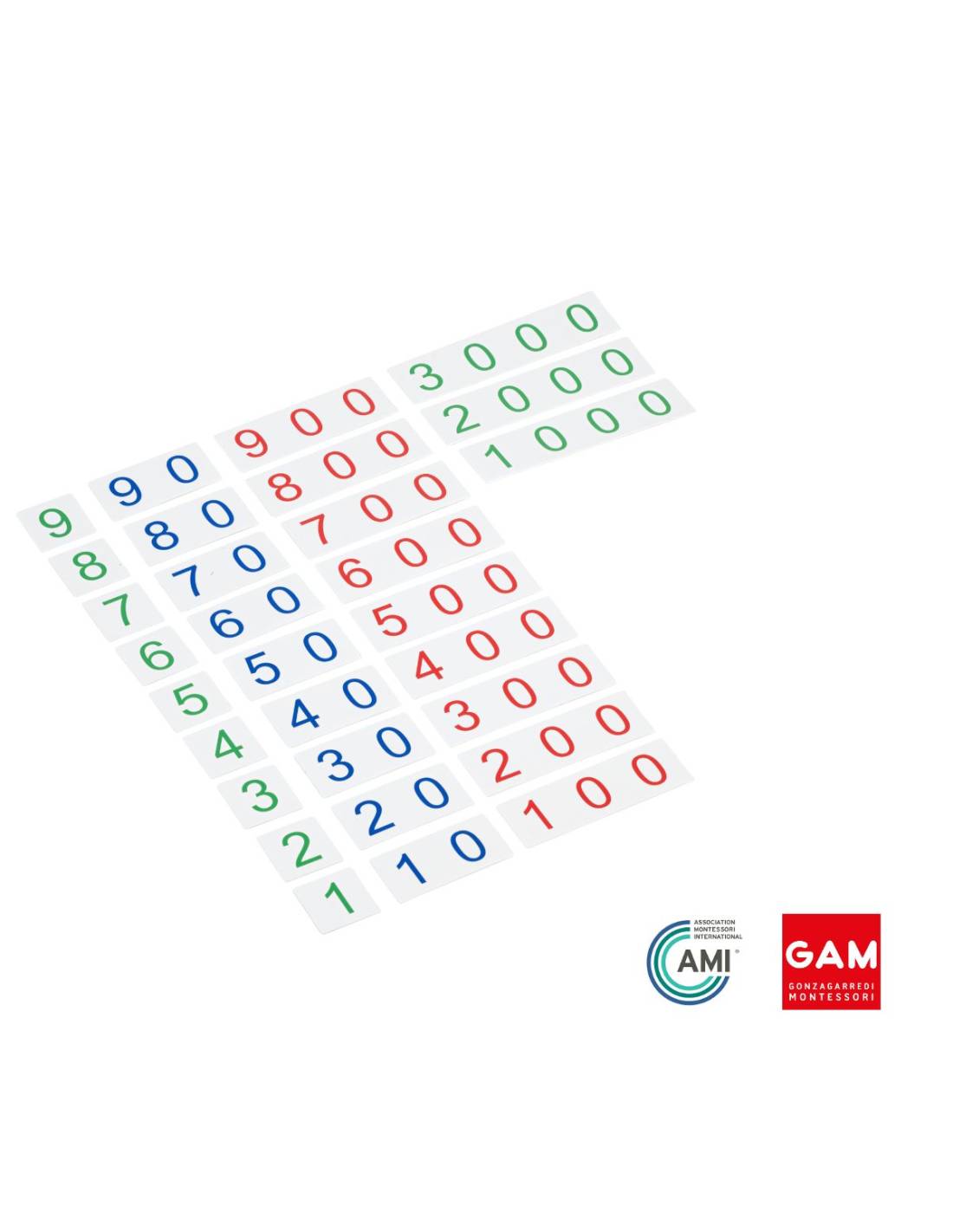 Petites cartes des symboles en plastique de 1 à 3000 - GAM Montessori