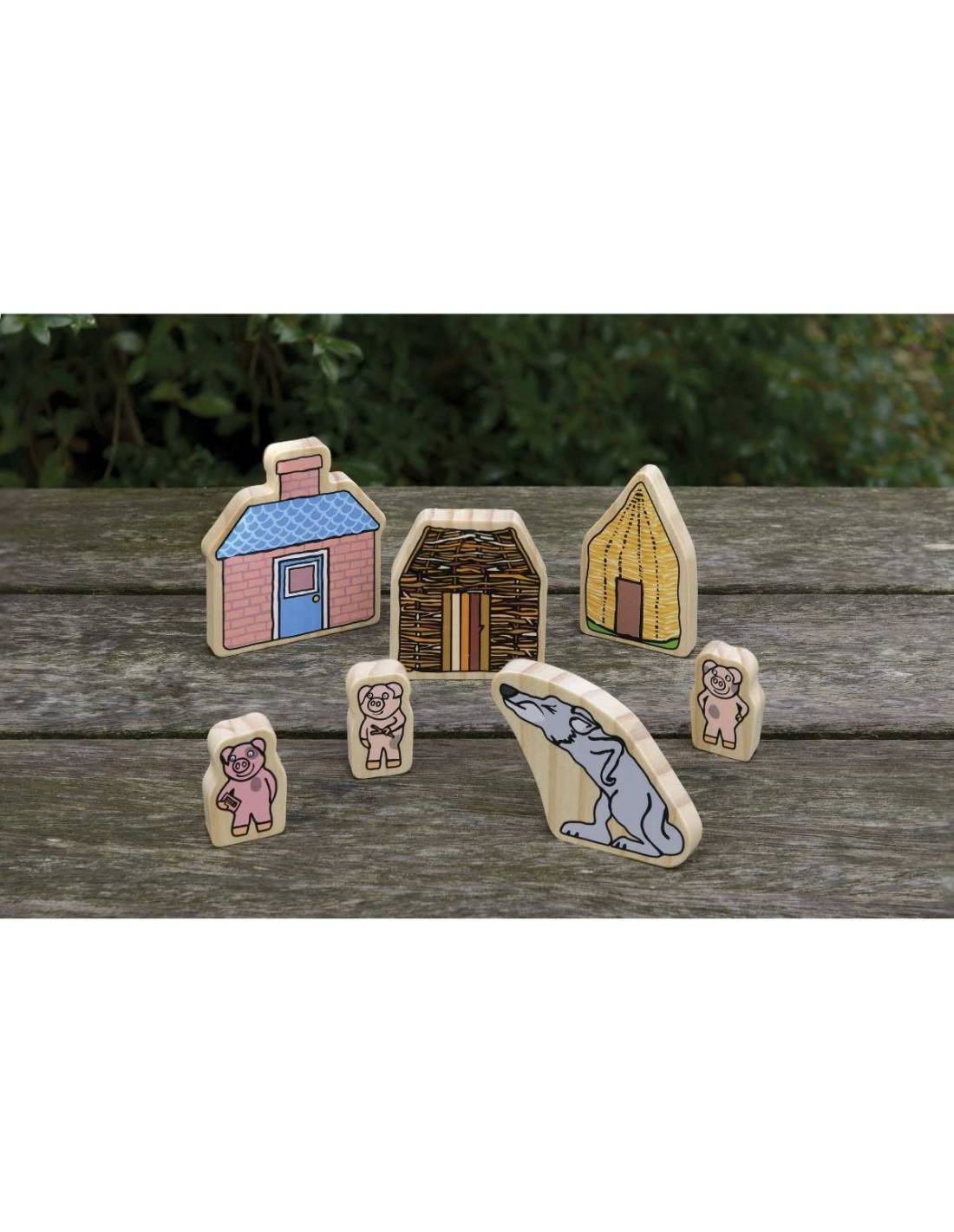 Les 7 personnages en bois des Trois Petits Cochons pour langage - Yellow Door